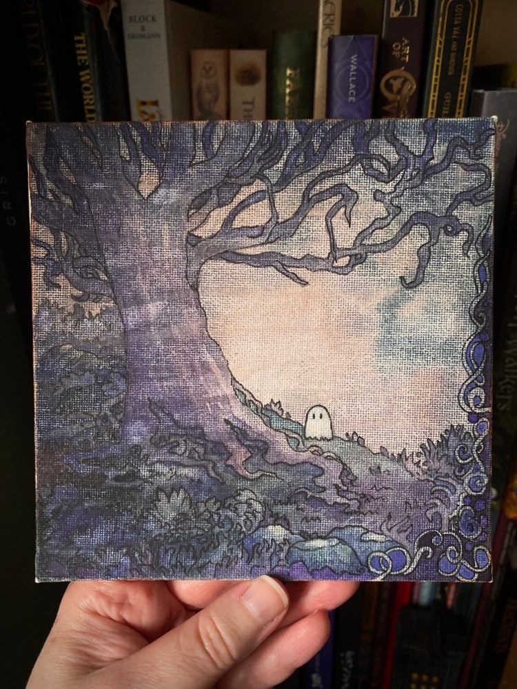 Watercolour on canvas board with an acrylic gouache painted edging.